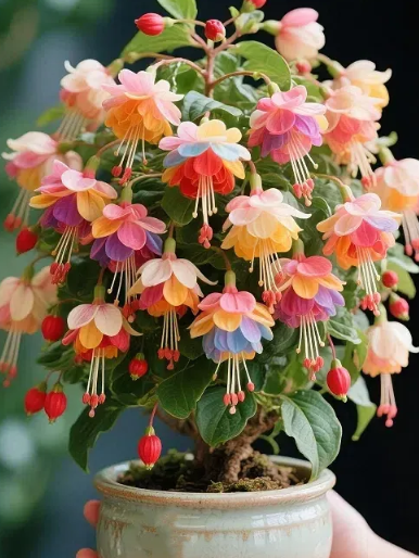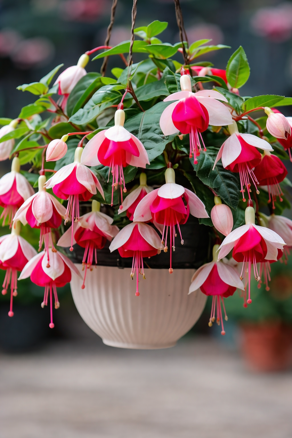 Фуксія — це декоративна рослина з унікальними квітами у формі ліхтариків, які одразу привертають увагу. Її яскраві поєднання рожевого, фіолетового, білого та червоного кольорів роблять фуксію справжньою окрасою будь-якого простору.